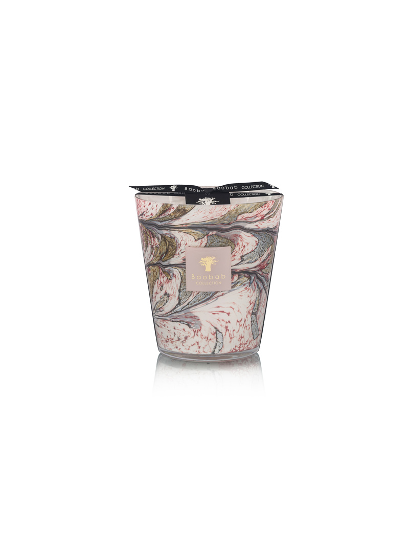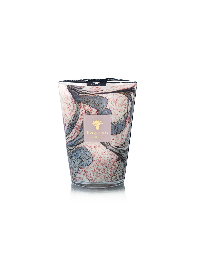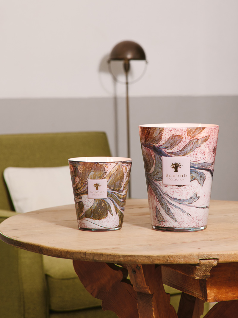 Habillée d’un verre soufflé aux nuances framboise et gris bleu, la bougie Manon se distingue par des marbrures délicates qui semblent flotter sur le verre comme des feuilles en suspension.
